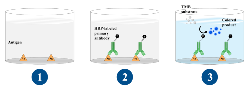 2.將針對目標抗原特異的酶標記一抗(例如HRP標記一抗)添加到孔中并直接與抗原結合。