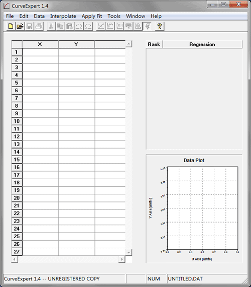 1.1啟動“Curve Expert 1.4”。您可以看到下面的界面。