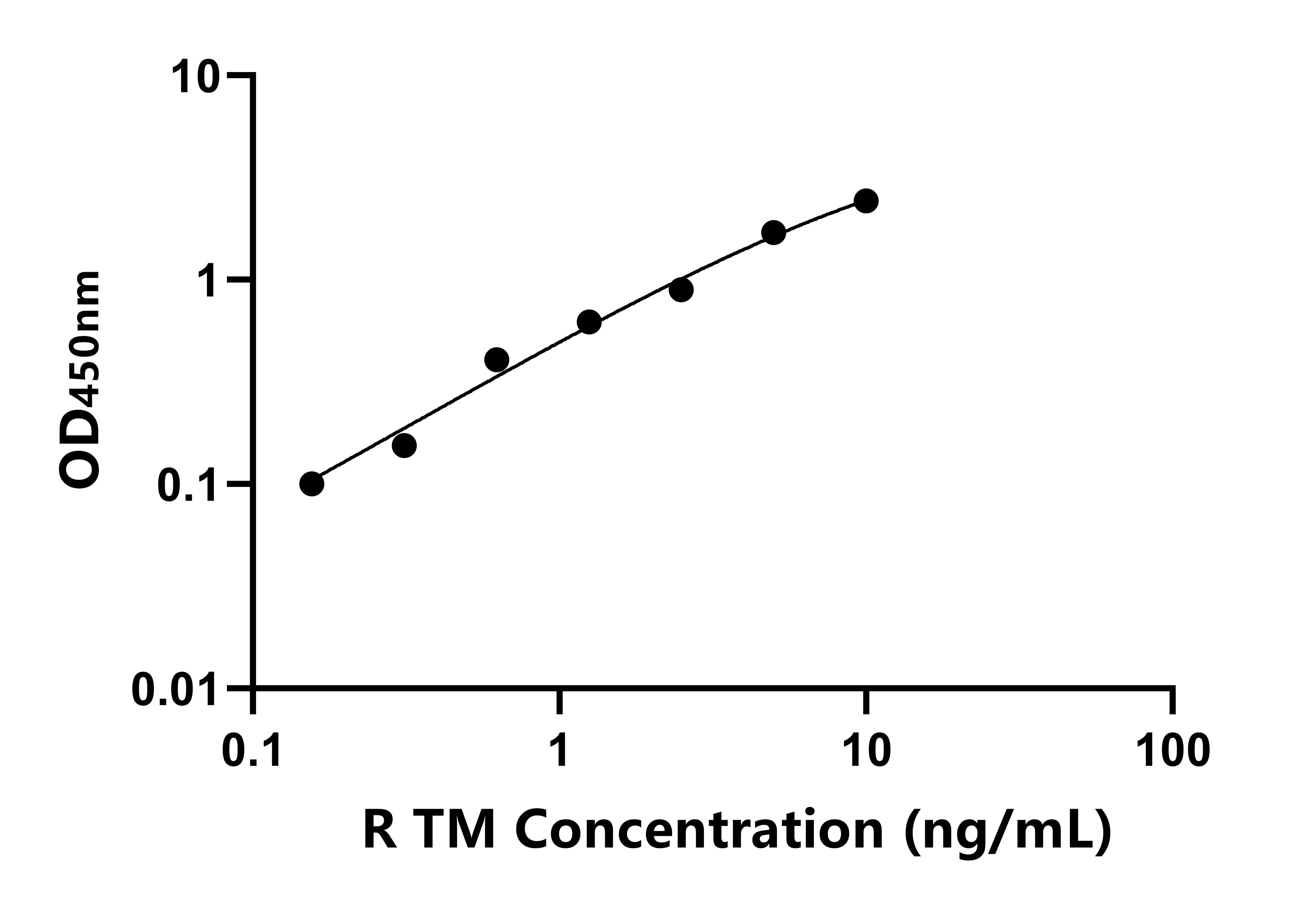 本試劑盒采用雙抗體夾心法ELISA技術:將捕獲抗體包被于酶標板上,捕獲樣品及標準品中的待測物TM,清洗后,再加入生物素標記的檢測抗體進行孵育后清洗,形成“捕獲抗體-抗原-檢測抗體”免疫復合物,隨后加入鏈霉親和素偶聯的辣根過氧化物酶進行孵育,待孵育結束后清洗,接著加入TMB顯色后,若樣本中有待測物則顯藍色,加入終止液停止反應。檢測過程中游離的成分均被洗去,用酶標儀在450 nm處測OD值,顏色的深淺和樣品中的待測物的含量呈正比,通過繪制標準曲線計算出樣本中TM的濃度。