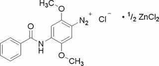 其他英文名稱 : Azoicdiazo No.24;Diazonium salt of 4-benzoyl amino-2,5-dimethoxyaniline;4-Benzoylamino-2,5-dimethoxybenzene diazonium chloride hemi[zinc chloride]salt;4-Amino-2,5-dimethoxybenzanilide diazotated zinc double salt