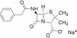 其他中文名稱 : 青霉素鈉;芐基青霉素鈉;芐青霉素鈉;盤尼西林;(2S,5R,6R)-3,3-二甲基-6-(2-苯乙酰氨基)-7-氧代-4-硫雜-1-氮雜雙環[3.2.0]庚烷-2-甲酸鈉鹽;3,3-二甲基-7-氧代-6-[(苯乙酰基)氨基]-4-硫雜-1-氮雜二環[3.2.0]庚烷-2-羧酸單鈉鹽;6-苯乙酰胺基青霉烷酸鈉