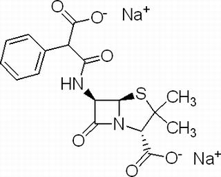 其他中文名稱 : 羧芐西林鈉;[6S-(2a,5a,6b)]-6-(羧基苯基-乙酰氨基)-3,3-二甲基-7-氧代-4-硫雜-1-氮雜雙環(huán)[3.2.0]庚烷-2-甲酸二鈉鹽;羧芐西林二鈉鹽;α-羰基芐基青霉素二鈉