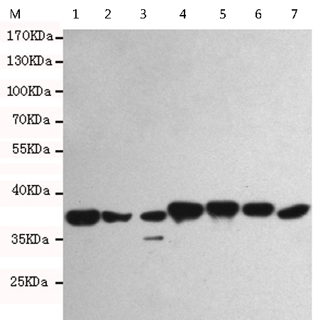 A549, CHO-K1, COS7, C2C12, C6, 3T3 and Hela cell lysates |